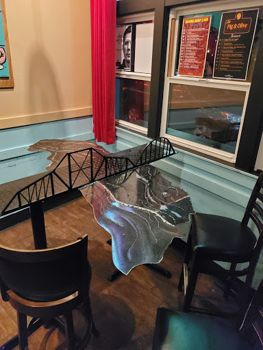 I love the atmosphere of the bar area in the back. Im giving this a 2 star rating because of my last experience here. I was meeting up with some friends for a dinner get together. It took about 25 minutes to place our orders. A couple minutes after ordering, a bouncer went through the entire establishment taking cover fees for the comedy performance. My party had no intention of staying as long as we had and we felt obligated to stay because of our order timing.