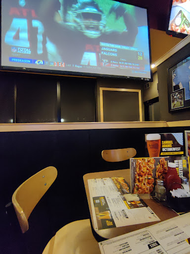 A great place to hang out with standard BBW fare and a beer. Food is what Id expect for a sports bar chain. It can get crowded at times - usually easier to find a table in the bar area (if everyone is 21) than waiting for a table on the other side. The lunch menu is a decent deal and it comes out super fast. Now that they added calorie counts to the menu it turned me off of a lot of the food.