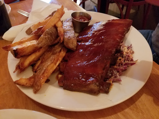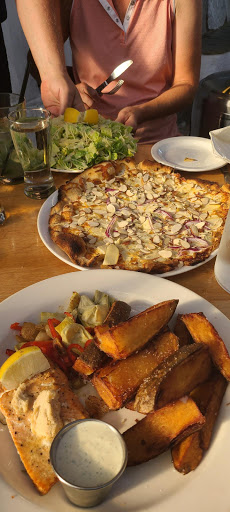 We dined here just this past week while traveling through. I had the hazlenut crusted halibut (cooked in the wood-fired oven) which was hands-down the best halibut I have ever had. The crust was crispy and the fish was super moist, so moist, it tasted almost like it had been poached. But it wasnt because I saw it go into the wood fire oven from my table. On the down side, the $4 dinner salad was the smallest, minimal salad I have ever received in a restaurant and definitely not worth the money. Also, at ~$25 for the halibut, the portion of vegetables was also extremely small and the "saffron" rice tasted more like rice a roni. My husband had a wood fired pizza which was OK. Bottom line, order the fish, pass on the house salad, and go somewhere else if you are really hungry. Also, the man at the table next to us ordered the ribs and was told by the waiter when he placed his order that it was a full rack of ribs. It wasnt, it was a half rack.