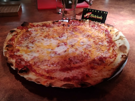 This is a very unique little place with a lot of character. It features a huge wood fire heated oven that must be about 12 tall. The inside is cozy and warm with a fireplace and tons of cool art on the walls. The service is friendly and relaxed, in fact the entire place is relaxing in sort of a Zen way. I was driving so we didnt sample the brews but the lemonade was hand made and very tasty. We had 3 pizzas and a salad, the pizzas had ample toppings and were tasty. Very unique twists not just the normal pizza varieties. They are all 12" pizzas. Im a bit picky on pizza as I do make my own from scratch at home and I hesitate to give 5 stars as I have my personal preferences. On that note, the cooking stone surface seems like it needed to hotter, but everyone has their own style. Also it would be more economical if larger pizzas were available for my family to share. The salad was very tasty and dressings were house made. Fireworks is not obviously fast food and relax as your order will take a bit to be prepared. We had first went into a strip mall pizza place and it was sparsely decorated, sterile and cold feeling, prices were similar and the menu very limited. We walked out and went to Fireworks, everyone agreed it was much better choice.