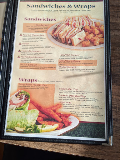 Great food, nice waitress. Will definitely come again! Kids menu had good options and the portions were huge. My husband the buffalo wrap and said it was the best he ever had. My steak came with salad, baked potatoes, and bread for only $13.99 which you dont see very often. Had lots of dessert options I wish i was hungry enough for.