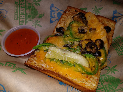 I had a Dank Blunt, which is a 12" pizza sub. It was amazing. The sauce was awesome. The cheese was great. The sub was bursting at the seams. I was also happy that it was NOT greasy. To top it off my order marker had a picture of Snoop Dogg on it. I will definitely be back. Also if you havent seen the "Toasted" Super Marioesque mural on the side of the building then I suggest you do. It is great.