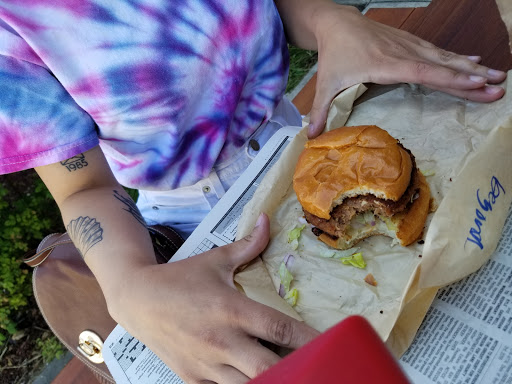 "Okay" Service, my burger was extremely small it may of been able to feed a child I was given brown bag with my food inside the burger was upside down causing the bun to get mooshy, fries were EXTREMELY SALTY and skinny soaked in oil they looked frozen Not worth $4.75 (burger + cheese), $2.75 for fries. Unless your on your work break and need a snack.