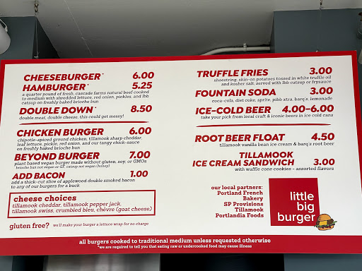 What a tiny, tasty, and magnificent burger this establishment offers up! Over the last few months Ive overheard my friends debating the merits of Little Big Burgers... uh, burger - so I thought what the hell, Ill give it a shot. The interior of the restaurant is pretty straight forward with spartan aesthetics and enough seating for say 35 people. Like many of the other newly opened burger joints in town, the food is cooked in the open a few feet behind the main counter. The menu itself has six maybe seven items to choose from. Essentially a glorified (and greasy) slider, boy did that little devil deliver. The patty was savory and sear-sizzled, with all the fixings loaded on after. Because the portions arent Murica-sized, it hit the spot just right without leaving me feeling bloated after. The fries, made from Yukon gold potatoes and boiled in truffle oil, are truly top notch and probably some of the best Ive had in Eugene. The shocking part was that ordering both of these delicious items together cost me less then seven dollars. Thats a steal for food of this quality! Considering the outstanding flavor and cheap cost, youd be hard pressed to find a better (and tastier!) burger value around town. I most certainly would recommend trying this place out!