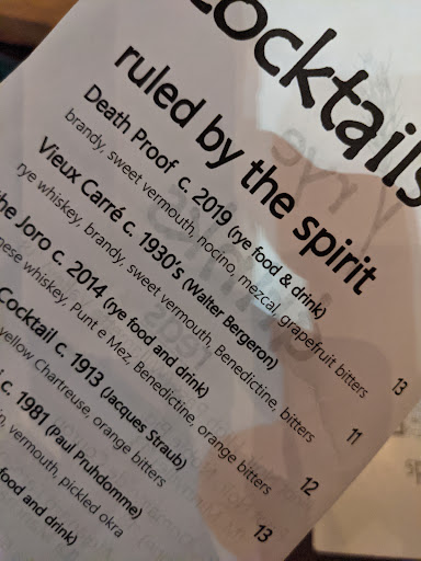 This is my "Cheers", but Im sure its far better than any fictional bar menu ever could be. Im always glad I came. I usually get a mixed drink, since this is the place to do that, and I often get a soup, even in summer. They do soups well, with satisfying, savory stocks, twists on traditional combos, good ingredients handled skillfully. Ask for the pairing dessert (house made chocolate du jour with matched whiskey ounce pour) Im hooked on the salty sweet finish of their sweets. Eugene has many fine restaurants, but this is my favorite for staff, drinks, food, atmosphere.