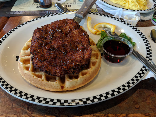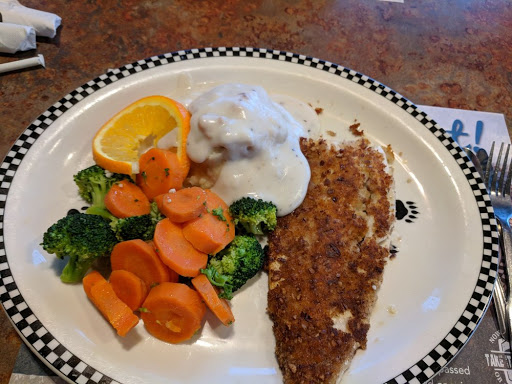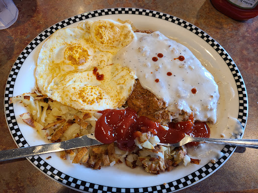 My favorite dish is the meatloaf with a baked potato and the bacon green beans. The sodas are huge the portions are huge. A nice diner but the waiters are hit and miss. Ive had times where its practically empty and they cant figure out who is in charge of my table and end up waiting 45 minutes for food because no one takes it from the window. And Ive had times where the waiter is amazing with suggestions and listing all the alternatives options right up front (like how I could get a baked potato instead of mashed- which I completely prefer from now on) and friendly and attentive. So it just really depends. Breakfast is good but dinner is better. Im super happy with the food and service 85% of the time. The soups are good and they make the desserts in-house. Better than sharis or elmers.