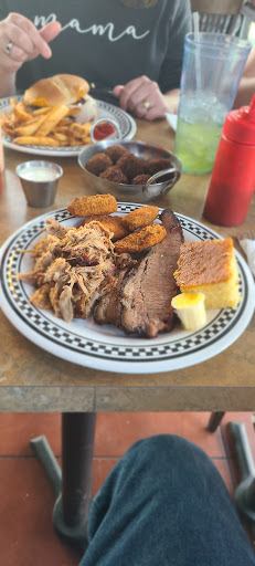 We have been here 3 times now, last time was awesome, more food for decent pricing, and more than could be eaten at the table. Went in about 3 months ago, and now tonight went back in. Far too many issues, and this will be the last time we go here. Which really sucks, because we love a good BBQ place. 1- The menus have changed, which is fine, but if you want to make changes to the menu, then do it. Dont use black sharpie to cross things off and also write in items with pen....just change the pages. 2- The prices have increased, yet the portions have decreased....A LOT. I ordered the 1 meat plate with the brisket (I love some good brisket) I received about 5 slices, 3 were FULL of fat. Im not talking a little fat, but the entire slice was fat. All the sides were very small. A handful of fried okra, a handful of sweet potato fries, and the cornbread.....well that is no longer made from scratch...it is boxed, and served COLD. Who the hell wants boxed corn bread???? I want the butter to melt into it, the way it should be. Not to mention, they have cu it about HALF of what they use to serve, now its just this little thing, way smaller than a Post-It.....And the jalapeno poppers as a side- 4, thats it, just 4. Now this side cost 4.95. For 4!! What?!?! 3- I am NOT ok with a line cook eating ON THE LINE COOKING....!!!! This is what we had the joy of watching, the line cook, cooking the food for the customers, EATING AS HE WAS COOKING!!!! Like WTF!?!?! 4- Waitress chewing gum, not discreetly, NO NO, walking around, talking to people, CHEWING GUM LIKE SHE WAS CHEWING CUD......NASTY. So must that we could almost hear it smacking in her teeth. 5- Now this is the topper- One of the manager was telling a waitress that there was 6 bone-in chickens left, and then SHOUTED out loud for everyone to hear "Unless I eat them first". Like, what, really???? So, this has been a very expensive, traumatic meal out, and we will not be going back. I hope they make some major changes, but I think they need to have the Health Dept pop in. I dont think they would like seeing some of this, I think eating while cooking may be against the rules....