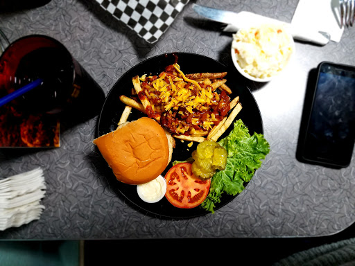 Stopped in for lunch during a 200 mile Motorcycle Poker run. Place looked pretty cool. Ordered the Hot Rod Burger, $11.95 Chili Cheese Fries, Diet Coke, and Mountain Dew I dont remember how much each of those where, total bill was $26 and change, $5 tip made it $31 and change. Burger was small, literally about 1/2 the size of the bun, it was under seasoned and very, very dry. Ketchup and Mustard on the table, no Mayo no special sauce.. Lettuce is hand leafed, nice tomato, and dill pickle slices all served on the tray, under the burger - no onion. Very Disappointing burger, even if it was sold at a more reasonable $5.95 price point. Chili Cheese Fries - Interesting the waiter asked if we wanted "Cheese and onion" on them. Shaking my head in a confusing manner, I questioned him, "Chili CHEESE Fries" dont they come with Cheese? His reply was not normally. Wow, OK. Yes, Please both Cheese and Onion. When delivered I was surprised by the volume - a HUGE basket of Fries which were way over done, maybe intentionally so that they wouldnt be soggy from the 2 or 3 table spoons of chili, about 20% of what a reasonable person would think was necessary to be called Chili Cheese Fries, volume of cheese was about 75% correct, onion - that was crazy, ridiculous, seriously way too big of slices. Honestly, they took a couple disks (lack of a better example of when you cut an onion in to slices to put them on a hamburger with all the rings intact. It looks like they took one, well maybe two, of those disks and cut it in to 4 like a pizza, seriously the onion slices ranged from 3/4" to 1" semi arcs, stupid big and no way that any of them would stay on a french fry if you found a fry with enough chili on it that "might, just might be able to hold some cheese and possibly a little onion. Huge Disappointment. Things got better, because we boxed up the Fries and brought them home, poured a can of chili on them, heated them in the over and had a snack while watching a movie on TV. They were so over cooked the first time, that even after 4-hours and a whole can of chili poured on top, they were still a little "crisp." This was my first time to visit, the Cruise in Country Diner - it will likely be the only time... and Perhaps it was just a "bad day." I did notice a sign near the register that read 339,480 burgers sold since March-09. Obviously, you dont sell that many burgers unless you are doing something right. Saturday, my meal was not right, not even close - and lets not forget, even if the meal was great, it was still WAY TOO Expensive.