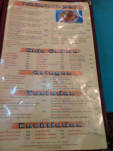 Good food in the common more Americanized style. Chips and salsa are good however the chips are a bit more dense than I prefer. Food comes on large plates with lots of their excellent and flavorful rice and beans. If you cant do rice/beans/chip/salsa good then all hope is lost for anything else, good for Juan Colorado they do well in all the above. Entrees are very good with generous amounts of sauce and cheese depending on the particular dish. All in all one of the best of this style of Mexican food in the immediate area.