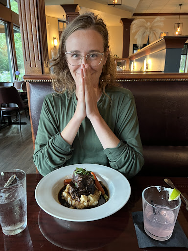 I recently moved to Hillsboro. This restaurant is right across the street, and looked like a great night for a Friday dinner. I would ultimately leave disappointed. We ordered, and our server was polite, but not really knowledgeable. I in no way consider myself a wine expert. My wife was pondering the Red vs White for her cherry /almost stuffed pork chops, so we asked the waiter for advice. He simply said that white and red both go well with Pork. True enough, but I questioned, "Wouldnt white be a better pairing because of the cherry / almond. At which point he agreed, and tried to sell us the most expensive bottle of wine on the wine list. None of this was surprising, or the reason I walked out. 45 minutes after ordering out waiter returns to apologize for the wait, but offers no recompense for it. Having worked as a chef I know that it is within their power, and polite to at least offer a drink form the bar. A draft beer would have sated me sufficiently, and cost the bar well less than $2. 10 minutes later I asked for the check for the drinks. Our waiter again apologized for the wait, and said he would return with the check. After waiting a few more minutes for the check, during which time checks and drinks were brought to the other tables by our server, I left the money for the drinks on the table and left. I walked into a nearly empty restaurant on a Friday night with an obviously full staff. I worked as a chef for over 12 years. I would never have allowed this in my restaurant. Furthermore, the menu was uninspired. The two page menu had very little variation and nothing signature about the restaurant at all. I also could not believe a restaurant that advertizes itself as a steak house had only three steak options, and no dark beer on tap OR in bottles. I was very disappointed. I do not expect to even give this restaurant a second chance.