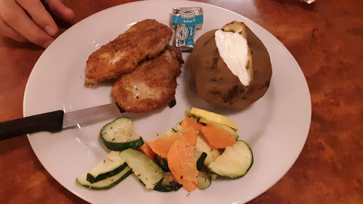 First time here and my husband and I give it a 4. Food was good, service was fine but our waiter seemed kinda depressed. They have a nice 8-table patio next to the parking lot. Their only gluten free bread option was a bun which wasnt very good. I had the bacon avocado cheese omelette with some extra veggies and the gluten free bun, added $2.50 to my bill which I felt was kind of high. They serve their breakfast menu until Noon and then they have a smaller breakfast menu plus lunch and dinner for the rest if the day. This place is your typical mom & pop diner.