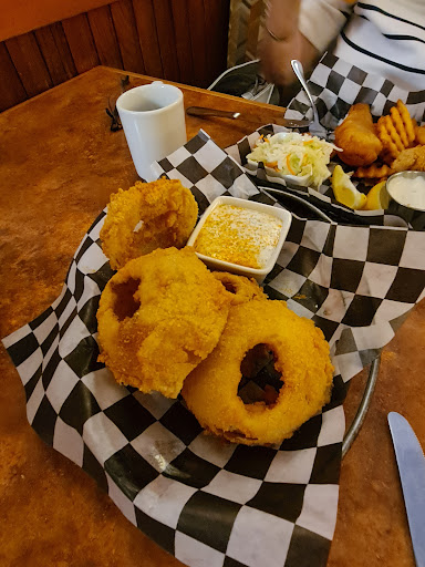Food was a rip off in this family-style diner, similar to a Dennys. Ordered two really expensive dishes from their crab specialty menu. Crab cakes were mediocre. Seafood crepes were chock full of mushrooms, with a few, pea-sized pieces of shrimp and a few flakes of crab meat that we practically needed a microscope to find. Onion rings were burnt to a crisp. God awful 90s lounge music playing in the background. Crap-ola for over $40 + tip. Never. Ever. Again.