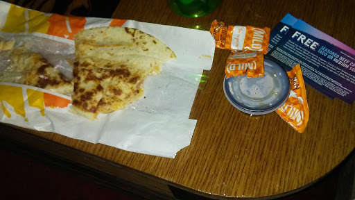 I tend to wind up here during off peak hours, and Im aware that the food I order here isnt going to be the best quality. But I kinda feel like, for as much money as youre not spending here (the prices are quite low here), and as dead as they are after about 4 pm, the staff could spend an extra minute wiping down tables or something. Then again, maybe corporate literally isnt paying them enough. Ive also accidentally driven right past it on more than one occasion - the driveway just isnt that visible if youre coming eastbound. Still though, if youre after cheap, greasy food and a lot of it, and you only have a five dollar bill on you, this will do in a pinch.