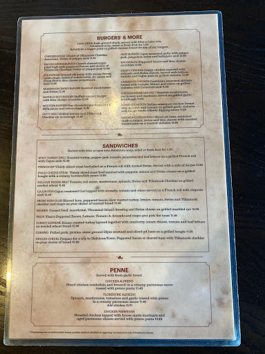 We had food to go. Chicken Alfredo was pretty bland, fish tacos could have been better with more sauce or spice. The kids chicken tenders was pretty greasy. I dont think wed go back, given it cost as much as a higher quality meal.