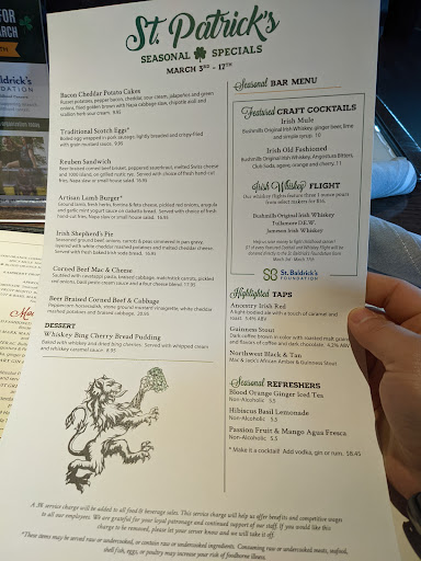 We were very disappointed. St Patricks day was packed as expected, so I had reservations. I only had to wait a minute before I was shown to my table. The server Crystal was just super nice and attentive. I noticed David Cox (the manager) was circulating around asking how everything was going, to each table. I was impressed. By the way, St Patricks is considered a holiday at this place so there is no happy hour. (Corporate does not have that in their web site). (Which I found causes many problems for the servers and management) Then our appetizer came our BBQ bacon wrapped shrimp. Absolutely fantastic, flavorful and cooked to perfection. Then came the main course, the special corned beef and cabbage. That was where the break down occurred. The main course was room temperature. When I let the manager know, he apologized and actually brought out another meal which was warm, but not hot. The manager again apologized and removed the main course from the bill. Bottom line was the service and attitude of management could not be better, but the quality of the food from the kitchen is lacking consistency. Probably need an expediter to check food quality. We would return for drinks and food, but not on a holiday.