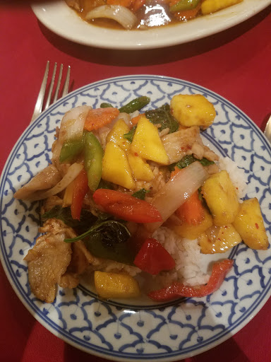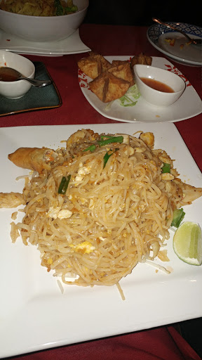 I got some Pad Me Mao there, or "Drunken Noodle". It was good, but had too much of the dark soy sauce on it giving it a bit more of a cloying flavour. This place is definitely worth exploring, as they got me my food fairly quickly, which I did not think that would happen, as the owner was having some kind of "dialogue with the dishwasher. But it came out all right in the end. Also, the place has parking in the rear, and you access it through a cobblestone walkway in the back. Place appears clean, well furnished, and also has a TV to watch too! I do plan on returning there to try more of their dishes.
