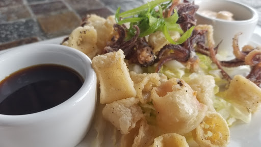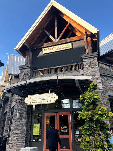 We were looking for some Pacific Northwest seafood while in town for a friends wedding, and decided to try FiveSpice. We were not disappointed. The restaurant is located above a lovely neighborhood in downtown Lake Oswego. Parking is easy to find and the area is nice for a pre- or post-dinner stroll. There is a nice walking trail along the lake and a small park-like square with fountains and benches. We opted for a outside table on the balcony overlooking the lake and the square. We were glad we had arrived early because by the time we finished our meal all of the patio tables were occupied. The inside atmosphere is also very nice, but the views from the balcony are really fantastic. The menu is limited, but my wife and I each found something that sounded good, and an appetizer to share. We passed on wine, but did peruse the list and fount it to be extensive, with a lot of options in a wide range of prices. We started with the Fried Five Spice Squid. It is very lightly breaded and fried, served with garlic aioli and a sweet soy based sauce. The spiced breading was a nice touch and really brought out the flavor of the squid. For dinner I had the Grilled Ahi Tuna and my wife ordered the Prawns. Both were delicious. Portion sizes were on the small side, but with the shared appetizer we both left pleasantly full. Throughout the entire meal the service was outstanding. We would gladly recommend this restaurant to our friends. The price was reasonable for the quality of food and service we received, with dinner for two coming in about $65 before tip.