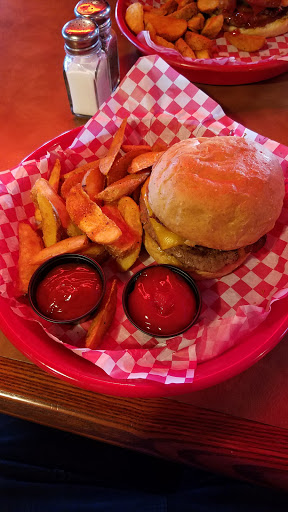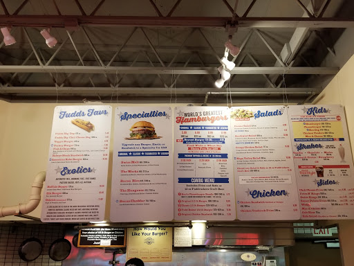 Too high of a price for mediocre food. Counter person was obviously annoyed with being there. It wasnt busy at all on saturday night, so I dont think it was because he was stressed. The hamburgers though big were flavorless. The buns were delicious. To make your burger a specialty burger you have to pay extra. Im tired of Red Robin but there cheaper for better service, and way better food, and more selections. Also the video games are antiquated and arent in good repair. The claw machine has prizes in it with old yellowing packaging. One Hot Wheels package was from 1999. Overall this place was depressing and I felt like I wasted my time and money. Fuddruckers has had better days. Maybe 1999.