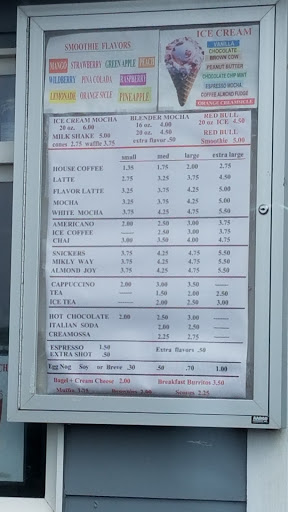 The coffee isnt bad but for the price I wouldve expected more. Also I sat in line behind 4 other cars for about 20 minutes. Not exactly a quick stop.