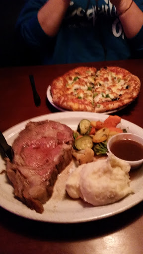 I come here often, and Im never disappointed! On my last stop it was a very busy night, there was a great band playing and a pretty full house...I even tried to bus my own table, but one of the servers caught me and stopped me! The service was great! The food was very good! and I got out of there with money left over! I also think the Roadhouse has one of the best happy hours of anyone around! There are so many menu options, I usually just ask the staff what their favorite dish is...they havent let me down yet! I usually eat in the bar side, but if you get a chance to bring the family...you should try the pizza for sure...its to die for! Yum!