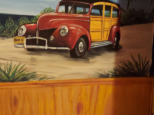 we walked from the state park with our dogs and were welcomed right in( dogs hung out on the back patio, rib bones served to them by a keen employee!). Tuesday is rib night and it was well worth it! We shared a pitcher of beer, ribs, the best calamari (ever). The weather went downhill and one of the employees offered us a ride home with our THREE dogs. Pretty awesome for a random Tuesday in March. Also, as were from B.C. (canada) the lack of tax and reasonable pricing made this spot a great option.
