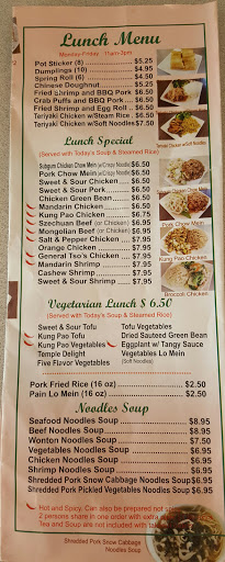 This is an amazing restaurant. I eat here all the time. There General Tso (pronounced Sou) chicken is great and the Hot and Sour Soup is the best I have ever had. Highly recommended.