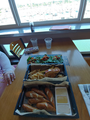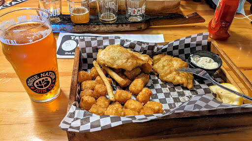 Fast service and we sat upstairs at the bar. It wasnt too crowded in the late afternoon (we went here after visiting the Oregon Coast Aquarium). My wife and I were able to try some of the Rogue beers that we havent heard of before. Some were... odd, but because they were willing to let you sample a taste of many we found some delicious beverages to pair with our meals. I got the grilled cheese (with tots) and it was FILLED with drippy smoked cheddar and Gruyere. Paired with with a Good Chit Pilsner. We didnt take the tour but overheard that it takes 90 minutes to do, so plan accordingly. That is much longer and possibly much more comprehensive than other brewery tours. Looking forward to returning and experiencing it. There are a lot of quality breweries in Oregon, Rogue is one of the largest. They may not have the BEST beer out there, but their beer is still VERY GOOD and at this location you can try more than what most places offer and their brews that arent their normal staple beers are quite tasty.