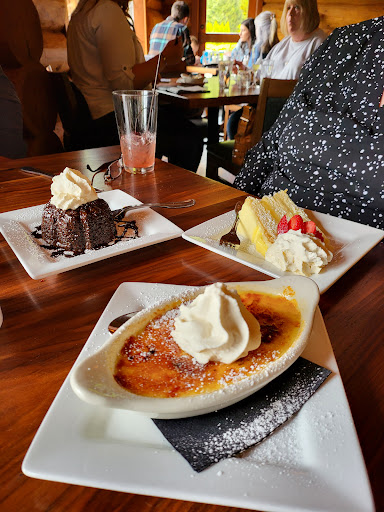 Two stars: both of them for the excellent service by the wait staff. The food was overpriced, especially given its shortcomings, and I was generally dissatisfied with my meal. My first and primary complaint: the food wasnt seasonal. A restaurant that pretends to serve fresh food has no business putting hothouse-grown heirloom tomatoes on a salad in October. The rest of the review is in no particular order: The pumpkin desserts and pumpkin beer were gross. The pumpkin "creme brulee" had absolutely nothing in common with real creme brulee. At least there were a very few non-pumpkin options. The ribs and fried chicken were nothing like soul food. If you dont know the difference, you might like those dishes. If youve ever spent time in the American South, youll be disappointed. The burger didnt have any cohesive character. It was a confused mismash of weak flavors and soggy bread. The chicken on the hazelnut salad was greasy, and thecheese wasnt sharp enough to balance out the sweetness of the cranberries. also, all of the salads (except for the caesar and caprese- but on that one, the vinegar was far too sweet) were basically all the same formula: arugula, cheese, nuts, fruit. It gets old. The log cabin was an interesting novelty but the roaring fire in the fireplace was inappropriate for the season and our entire party sweated profusely throughout the evening. Also, we were only infrequently served water, and when it came, it came in a tiny bottle that only filled 1.5 of our glasses. This coupled with the salty food and very warm restaurant left us uncomfortably thirsty during our whole meal. The only member of our group who ordered a steak commented that it was unevenly cooked. Only a small part of it was medium as ordered. However, the burgers were cooked correctly, with one rare and one medium rare.