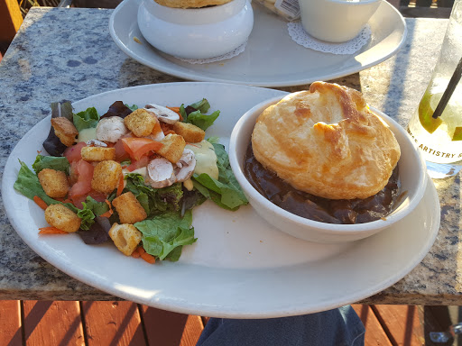 It was so ridiculous it was funny, First we were sat at a picnic table wedged between a tree and a rock, the bench I was sitting on was so warped and the angle of the table such that I felt like I was going to tip backwards, about 5 feet away was a pile of rubbish, we felt like we were next to a homeless camp! when I asked to switch tables nicely of course, cause I thought my back was going to hurt if I didnt , the gal in control of the wait list frowned and said she had a lot of people on the list waiting and she didnt know how she would be able to switch us. Luckily we had to wait in the bar area before we were seated outside cause at least we had drinks, at one point we thought because I complained we didnt have a waitress, 45 minutes with very empty beer glasses later a gal showed up, she was really nice and apologized. We did end up getting seated at a different table which was more comfortable. Then to only wait half hour longer for our fish and chips that were well done, our appetizers showed up after our dinners came! When we asked for silverware, we thought the waiter was kidding when he said there were none to be had! Wow it was almost getting ridiculous. We did get them eventually to finish our meal. We got there at 6:20 and didnt leave until 9:00! I had read a Facebook article that gave them a 5 star rating, I gave it a 2. Scotch and beers were good, food and service not so good!