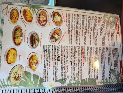 A family Mexican restaurant. Chips on the table, a large menu and traditional decorations. Probably the best family Mexican place in the area.