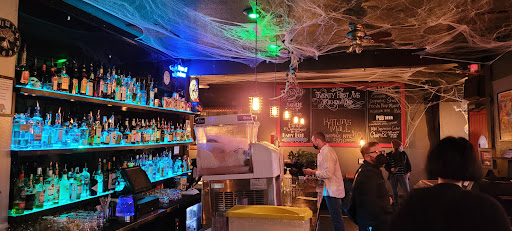 Dont let the initial "divey" bar atmosphere deter you away. Take a few steps into their back patio and discover their spacey and friendly patio where small decorations makes the atmosphere a wonderful place to just kick back and enjoy few brewskies with your buddies. Prices are moderate, food is good. Nothing particular, just sense of good atmosphere where there is no pretentiousness.