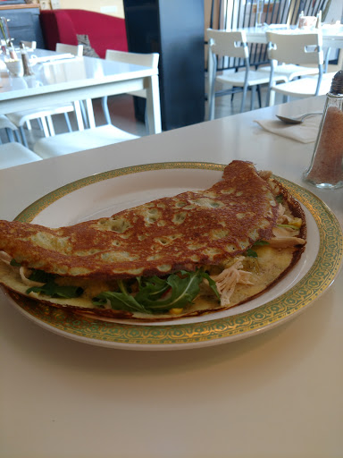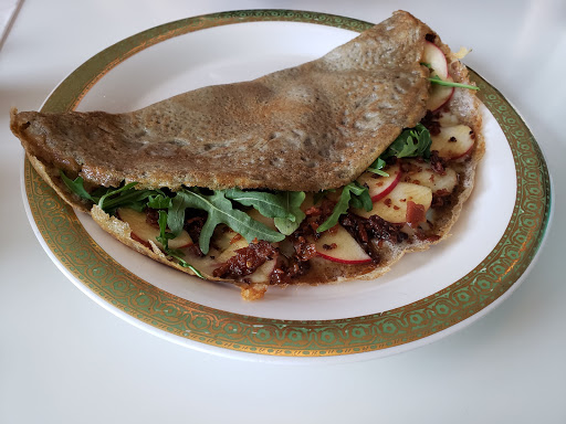 Had breakfast here last weekend. My wife and I got savory crepes and both seemed pretty good. She opted for a polenta crepe (gluten free) and I had the traditional, both of the crepes had chicken. The food was good, but their prices seem a bit steep. Also, we walked away wishing that the crepes would have had something on the side. We were all still hungry upon leaving and felt like we didnt quite get our moneys worth.