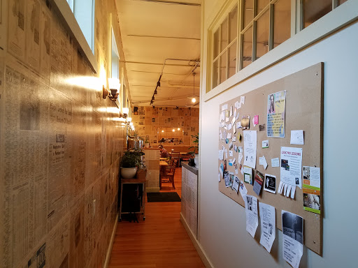 Airy, open space papered with regional newsprint from the last century, and surprisingly cozy. Treated myself to the bacon-wrapped meatloaf sandwich which excelled all expectations. I probably could have just had a large plate of the fantastic greens (Ill definitely get an extra side of it next time). Friendly folks on both sides of the counter. Apparently theyll be open for dinner soon. A neighborhood gem for sure.