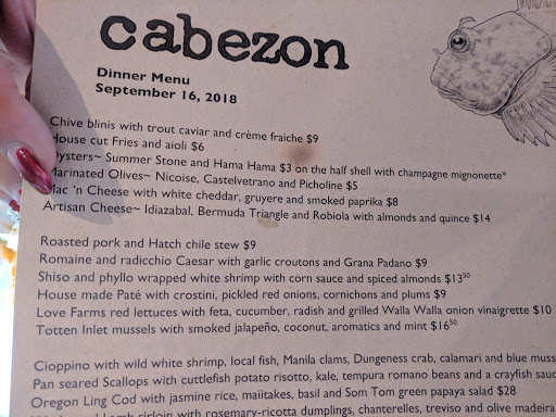 Totally disappointed! My love researched to find a special place for my birthday dinner. Cabezon won out. Upon arriving, we asked for a different seat than we were taken to. It was too tiny. Moved to an open area, unfortunately next to a party of 6 who were over-the-top noisy. At least they enjoyed their food. To be sure, the salad and pate were delightful. The bread heavenly, the beer great. My cod was wonderful, my loves Cioppino was soooo spicy-hot it was inedible (I sampled it and agreed that it was way over the top). But that was not the problem. It was the reaction of our server when we complained. Our server acted shocked that it was too spicy and indignantly informed us that they served a lot and had no complaints. Then I made a suggestion that she might advise the chef that I think jalapenos were not the best garnish for a cod dish. She huffily informed me that SHE was NOT going to advise the chef about anything because the chef was the owner. WOW! I guess the chef must wield a huge French knife for the staff to be so terrified! As an aside, décor is minimal, art ugly and doesnt have to be crowded for deafening noise. The big reason we wont return? Attitude of wait staff.