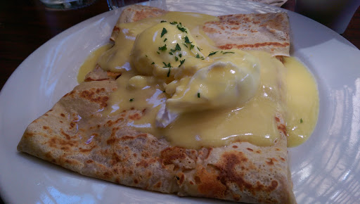 10/25/14 This place is a delicious gem. I had been craving crêpes and chose this place because of the great reviews in this forum. I have to say I was not disappointed. Food: freshly made, using some of local produce. Offers gluten free options. My entrée (I forgot the name) but it was made with chicken, olives, tomatoes, cheese and spinach. I only wished there was more sauce on the crêpe, but thats a personal preference. The French onion soup was wonderful. Nice subtle taste. Not overly salty as many places tend to do. I got the Maison crêpe for dessert and opted for the flambé. The flambé was $3 more, but at this point I felt like splurging. This crêpe is made with fresh local berries and custard and let me tell you, it was a wonderful balance of flavors. All of this accompanied by a delightful glass of Riesling. Cons: because everything is made so fresh it can take a while, but, in my opinion worth the wait. The place is quaint and very small so be prepared to possibly wait for a table to open up. Because the ambiance is so pleasant and cozy some of us didnt want to just leave after being done. Service: wonderful! Again, theres the chance you have to wait, but thats just because its such a wonderful place. The waiter who served me was very pleasant, knowledgeable on the menu and offered great recommendations. All in all, I plan to be back to sample the rest of the menu