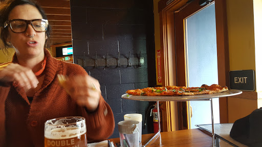 This place is awesome! I can bring anyone to this restaurant/brewpub; friends with infants or children, my dad, my boyfriend, my best friend. The generously-sized dining room ensures you wont have a long wait for a table (the wait varies during peak hours). If you do end up waiting there are comfortable seating areas (couches! yay!). The pizza and sandwich options have something to please everyone (gluten-free bread is available), as does the drink options. There is an excellent selection of beers, a cider, and standard wine options. The atmosphere is casual and comfortable, and the large windows roll open to allow a breeze on nice summer days. This is not a sports bar, so dont expect to be able to watch a game or match here. Music comes from a record player behind the bar or from local musicians on certain evenings during the week. Amplified music is kept to a sane level so you can still have a conversation while enjoying the tunes.
