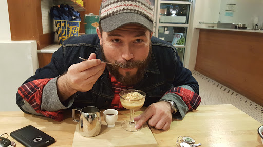 Im trying to remember how long I have been loving Fifty Licks ice cream. I think it might have been when they first opened, since I have a photo in 2010 of their Red Bull Cola Ice Cream, I wrote in the captions that the Stumptown Coffee and Tahitian Vanilla were excellent, and was particularly loving the bacon bit parts of their Maple Bacon. I called it then "wonderful shake-ups to normal ice cream." Even though coffee and vanilla sound plain, they were bursting with flavor, and you could notice and appreciate the high quality ingredients. I like how the French custard style makes their product so creamy and soft. Recently (this past August), they opened up a brick and mortar location at 2021 SE Clinton at 21st, just down a door from St. Jack, and also easily walkable from SE Division or Powell if the other offerings on SE Clinton arent enough options. This sounds like a PERFECT end of a dinner for me. They are just a cute, clean crisp little bright spot. It turns out the Fifty Licks is more than just an Ice Cream Parlor. Besides offering the following ice cream flavors and sorbets. You can also get Fifty Licks sorbet cocktails and Cafe Cubano. So it can be your stop before and after dinner! They have twelve rotating flavors of scooped ice creams and sorbets. The flavors will continually be updated/rotated, based on what mad genius comes to fruition for the Fifty Licks imagination + execution testing! All you need to know is that Chad is a mad genius, and you cannot go wrong with any flavor you pick. Example ice cream flavors for instance might include (remember these will rotate based on seasonal ingredients/new ideas!): Stumptown Coffee Tahitian Vanilla Toasted Milk Jasmine Tea with Apricot Caramelized Apple Cherry Bourbon Jasmine Rice with Fragrant Pandan Raspberry Blood Orange Screamscle Maple with Bacon Single Malt Scotch Sorbet flavors for instance might include: Coconut Lemon Saffron Passionfruit with Sichuan Peppercorns Grapefruit with Rosewater Rhode Island Style Frozen Lemonade Chocolate with Toasted Oat Milk You can select a gluten-free waffle cone, and toppings such as Ghost Pepper salt, bee pollen, sweet corn dust, potato chips, Ovaltine, who knows what they might have! They do not have a liquor license or full bar (since that would require them serving food, which is more than this little ice cream parlor can handle in their space), but the few cocktails they do offer are so exquisite and Im not sure why you would want anything else. These are so sophisticated I dont know why they arent currently on a Bon Appétit or Saveur cover, they are so beautiful. On the other hand, maybe by June of next year, they will be... They offer a happy hour on their sorbet cocktails from 4-6 pm daily.