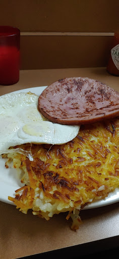 Look, the foods alright, but when youve got a super rude server who does nothing but constantly making stupid jokes and obviously doesnt want to work there with her attitude being the main focus of our breakfast!! She was also trying to charge me and my husband 30$ for a breakfast that we KNOW was only 15$, she does not know how to do math with a calculator right there!! Horrible customer service, DO NOT GO THERE ON MONDAYS OR TUESDAY, every other day is great, the other older woman who works there is very personable and friendly and has amazing customer service skills, the old lady Im talking about sucks, she is mean and her jokes are not funny, her jokes consist of how much she hates her job, well then stop making my breakfast suck because you suck!!!! Im not happy