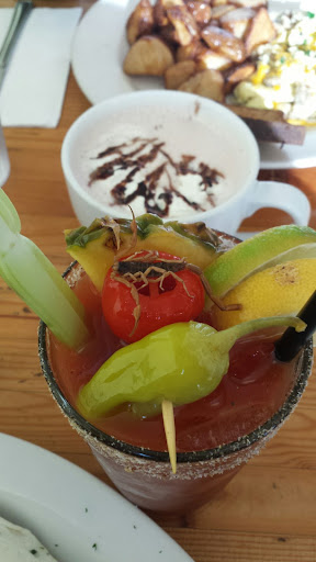 Great breakfast food and amazing Bloody Marys. Try the cucumber infused vodka (refreshing) or the habanero infused vodka (spicy goodness). I havent had the bacon bloody Mary but it looks fantastic... if you love bacon. There is generally a wait on the weekends, but its totally worth it. I recall that the biscuits and gravy here is vegetarian (I had to ask since I found out that mushroom gravy doesnt mean that it wasnt made with chicken stock; Lilis Cafe)