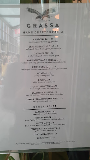 Grassa sits nestled on the corner of 12th & Washington just next to its sister spot Lardo. If youve had Lardos exceptional take on sandwiches with "dirty" fries, then keep your expectations up and try to keep the saliva from overtaking rational thought. The menu-style is very Lardo-like as well - a simple board in the entryway speckled with everything from Italian classics a la Cacio e Pepe to tomato-braised lamb to sides to a house lager from Occidental. After very quick experience with a friendly hostess I was handed a table marker and found a comfy corner spot to await the to-order creations. On my first trip I decided to go as simple as possible. Cacio e Pepe. Garlic Bread. Lager. There are plenty of more exotic and possibly exciting things on the menu (the next table over had some squid ink pasta that looked amazing!) but I wanted to see if they could nail a humble dish. And boy did they! It was, simply, spectacular. I wound up mopping up what was left with the second half of my delicious-on-its-own and not-for-the-faint-of-garlic bread, and would happily order again, and again. Go. Its fantastic.