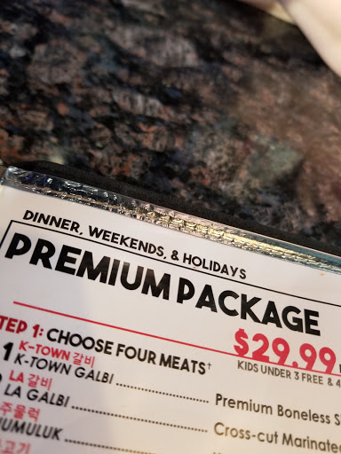 Hit or miss. Sometimes the experience is flawless. Sometimes, its horrible. Pretty much a gamble. The food is generally good as long as you know how to operate a grill. Ventilation is poor, so if youre sensitive to grilling or fumes, please go somewhere else. Come wearing something you dont mind stinking up, because youll smell like gas grilled food at the end of the visit. On busy nights, the fumes are intolerable. I always have to do a load of laundry and take a shower afterwards. Aside from the smell, the older Korean lady is always rushing you out well before your time is over (2 hours during the busy times). One time, she rushed the wrong table out and there was a scene. We watched helplessly while the customer argued in vain with the crazy lady. They had come in after we did and had only been there about an hour. Unacceptable! UPDATE: Came at the wifes demand and its a busy Sunday. But while the waiter took our order and brought sides, water, and serving plates, he didnt bring glasses or silverware/chopsticks. Are we supposed to drink from the pitcher or use our hands? He never came back so we had to go hunt someone down after a long while. Not cool. UPDATE2: Wife really loves this place. I do enjoy the food, but... ugh!