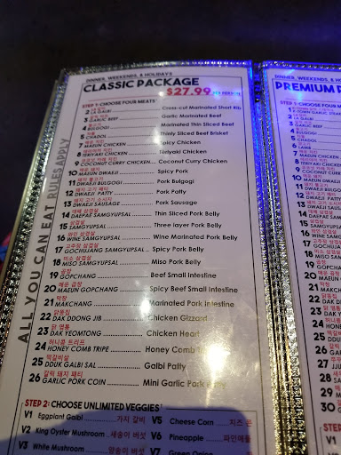 Overall it was great. We love korean BBQ. We usually go to the one in Beaverton and they always serve marinated bulgogi meat . This place serves it frozen and when you cook it it is missing the flavor. They do give you a little Bowl with a sause to deep your meats. Service at this place was great, however. May be because we had all you can eat order or may be they were busy, It seamed like they were taking a bit more time to bring next order. Salad Boal is huge, fresh, and delicious.What was strange is that they also have strict limitation on vegetable choices per order. We also ordered recommended pineapple drink. It was absolutly delicious. My husband and I shared it ,but did not finish it. They serve it in the big cool jar. I would recommend this place for every reason but the luck of marinate /flavor for the Bulgarian meat.