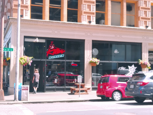 Great burgers and a great downtown atmosphere make this location as killer as its name. The staff is super friendly and knowledgeable of their menu and I am always greeted with a smile and my order is always correct and comes out hot. The beer selection could be a little better for the dark beers, but, there is a delicious red that is available and recommended. For the adventurous of heart try the peanut butter pickle burger which is a super rich burger and has a flavor profile that reaches near perfection.