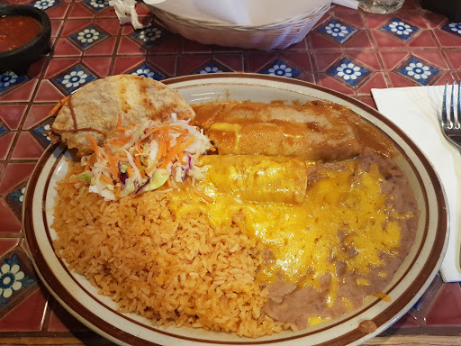 Our realtor told us that this is his favorite Mexican restaurant despite the outward appearance. You would think it is an abandoned building as you drive by except for the lights of the sign and inside the restaurant. A group of Latinas celebrating a birthday occupied the table next to us, always a good sign when people indigenous to the cuisine frequent a place. The food was decent by Left Coast standards, exceptional by Midwest standards, and reasonably priced. We tried the chili con queso ($5.95) and guacamole ($3.50) for starters. The queso has an odd consistency, similar to ricotta cheese, but was good with big chunks of green chili. The guacamole was cut with something because it neither had the texture of mashed avocado nor the taste. My wife had the quesadilla and taquitos appetizer (Menu price = $9.95, we paid $10.95) as an entree and it was disappointing. Coming with guacamole, pico de gallo , and sour cream, the quesadilla had hardly any cheese and the taquitos were a bit burnt and dry inside. I went with the chile relleno, taco, and enchilada combo ($11.95) with, as my dad used to say, "refired" beans. I asked for a cheese and onion enchilada and shredded beef taco, but got a shredded beef enchilada instead. The taco was good, but came in a pre-fab shell (deal breaker). The enchilada was also good, but not what I ordered. When I told the waiter that I got the wrong enchilada, he scurried off before I could tell him to forget it. He brought a cheese and onion enchilada a few minutes later, but I barely touched it because I was stuffed by that time. What I did eat was very good though. I could not even see the relleno because it was covered with shredded lettuce and tomato. I think it was pretty good, but the taste was masked by the unusual toppings. The "Cadillac Margarita" ($5.95) was rather tasteless and weak, so I did not bother ordering a second. In conclusion, the service was excellent and the decor cheesy, just as it should be. CombatCritic Gives La Carreta 5 Bombs Out Of 10 ... More Bombs Are Better!
