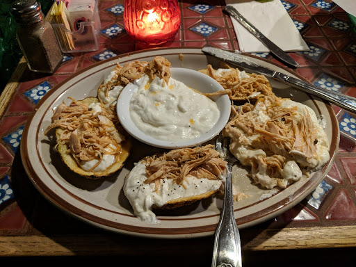 There is only one word to describe this "Mexican" restaurant: terrible. When walking in the door, youre visually assaulted by completely out of place decorations everywhere. We stood up for 5 minutes before being noticed by one of the servers that didnt seem to actually have anything else keeping them busy. In a fairly empty restaurant, we were sat right next to a large and very loud party. We got fajitas and enchiladas to eat. The chicken for the fajitas looked disgusting and the enchiladas had huge chunks of what Im assuming was potato in it. Overall, it all seemed weirdly untraditional and tasted horrible. I dont know how this place has a packed parking lot as often as it does...besides because of the bar.