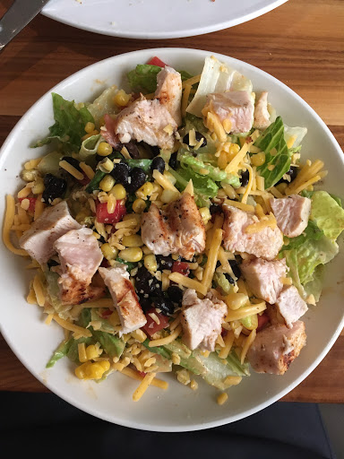 We had the quesadilla and soup&salad. The salad with blue cheese and fruit was the best of the three. The white bean chicken chili was pasty and not very flavorful. The quesadilla was ok but despite having green chile, wasnt very flavorful. Service was excellent.