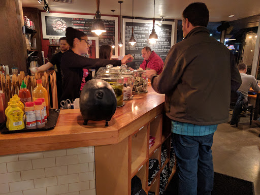 In their transformation from food cart to two physical restaurants, they still have a very casual level of service. Ive seen this in many places in Portland in order to reduce service staff costs. You go up and order from a chalkboard on the wall, and are handed a number so that your order can be delivered to you, and then you bus yourself to the bins. Wisely, they already have to go boxes for your leftovers out. First of all, the Bloody Mary is quite spicy! I loved it! There haven been many a bloody mary that I have tried around PDX that didnt bring it (and with great distilleries like New Deal with their Hot Monkey vodka and so much heirloom tomatoes and homemade pickling!). Thankfully, Lardo brought it to punch with flavor with their take on a bloody mary. As I waited for my order to be prepared (they do so to order), that bloody mary really raised my expectations of what I was about to experience You may consider bringing a friend to share with if you get the double burger and fries- I felt my heart would burst just eating that half of a Double Burger (with both Cascade natural beef and pork belly as the meats along with the cheddar and lardo sauce) and the Dirty Fries. Oh those Dirty Fries with fried pork fat scraps, marinated peppers, fried herbs and parmesan, a tasty but filling combination on the tastebuds of savory and salty and spicy and sour, both crispy and so lingeringly soft in the same chew. Genius. Im not sure why you would not order these fries dirty- you sort of need all those peppers to balance out that pork belly on the burger. Not to say the pork belly isnt delicious- at one point I separated them out to eat them individually to savor them, and even without the pork belly that burger is so juicy and messy and glorious. I can see this showing up on the national charts of Food & Wine as one of the best burgers in the US, and it is definitely in the top 3 for Portland. Meanwhile, Lardos Eggplant Parm Old School with tomato sauce, provolone, basil was messy with its generous saucing, and the breading still had a bit of crispness despite it. It is a good option for the vegetarian who you drag to eat Lardo with you. In fact, Lardo offers two vegetarian sandwiches. Finally, Lardos signature porchetta sandwich with caper aioli, gremolata that have been written up nationally including the recipe shared at Saveur. Its a sandwich of fatty melt in your mouth pork belly that is wrapped around the roasted pork and doesnt apologize for it, and in fact adds all that good olive oil and gremolata on top (though seriously just the meat/fat combo itself is already luscious). Lardo is serious about bringing the fat back. And, it doesnt hurt that now with having a restaurant space (two actually!), they can offer half a dozen options for cocktails and more than a dozen local Northwest microbrew beers to wash that extreme richness down with. They also have pie holes- I stared so wistfully at those pecan pie holes but couldnt muster the courage to add more to my arteries in one meal (well, also considering what gluttony the meal order already consisted of as you see. I more than blew my caloric allowance before dessert...) Not a single thing is more than $10 (though natch- you have to be willing to be in that price range for the sandwich), but every item is an indulgent pleasure that seems to border on sinful in its exaltation of richness.