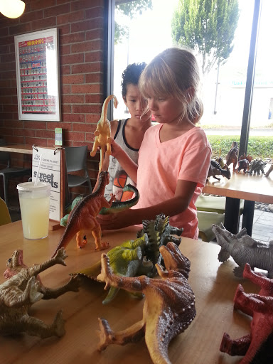 This new Laughing Planet location serves the Beaverton area with great food, affordable prices, and very friendly staff. The location is kid friendly (play with the dinosaurs!), and has a nice relaxed atmosphere. This is one my familys favorite places to eat out at.