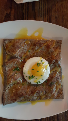 Really great crepes and definitely something a little different from your standard dinner fare. My wife and I had dinner here and we each had a savory crepe then shared a sweet crepe for dessert. I had the smoked salmon crepe and it was very good. Theyre big and surprisingly filling. We had a dark chocolate & cherry compote sweet and it was terrific. They also have great cocktails. I had a gin and mint concoction that was delicious. It is a small place (like max out at 30 seats small), so if theyre busy when you go there may be a wait. And because its so small it can get real loud, overall its great.