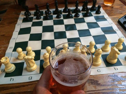 More like 3.5 stars, but rounding up since I keep unexpectedly finding myself here. The space is large, with an exposed, high ceiling and long tables in a beer hall inspired setup, while the walls border on kitschy with a mix of pictures of dogs and bulletin boards full of pictures of folks with Lucky Lab shirts all around the world. So why do I like the place? * the space - whether its sitting out back on the large patio (surrounded by folks with their dogs), inside with a large group for a MeetUp, or just tucked away solo in the corner with my laptop, theres plenty of choices, and the large space makes it very adaptable. Its not unusual to walk in and see people running D&D campaigns, playing chess/Go/Scrabble/etc, * wide beer selection - while not my favorite Portland brews, I dont think Ive had a "bad" beer here. Theyve always got something on the cask, as well as a nitro pressurized brew as well. No "great" beers in my opinion, but plenty of very serviceable brews. * "bento" plates - For $7, you get a big plate of white or brown rice topped with veggies and a choice of sauce (peanut, spicy peanut, or a sweet chili), and you can get chicken and tempeh versions too. Nothing fancy here, no subtleties, just a filling plate of rice and some toppings. * sandwiches - okay, Ill admit, Ive never ordered a sandwich here, but Im always tempted (though the lure of the bento plates, which are a few bucks cheaper, tend to lure me in) I find this Lucky Lab location frequently being a coffee shop alternative for me when Im looking to get a little work done on my laptop. Its a 10 minute walk from home and while there are also a number of coffee shops in the area, it often wins since its open late and has beer.